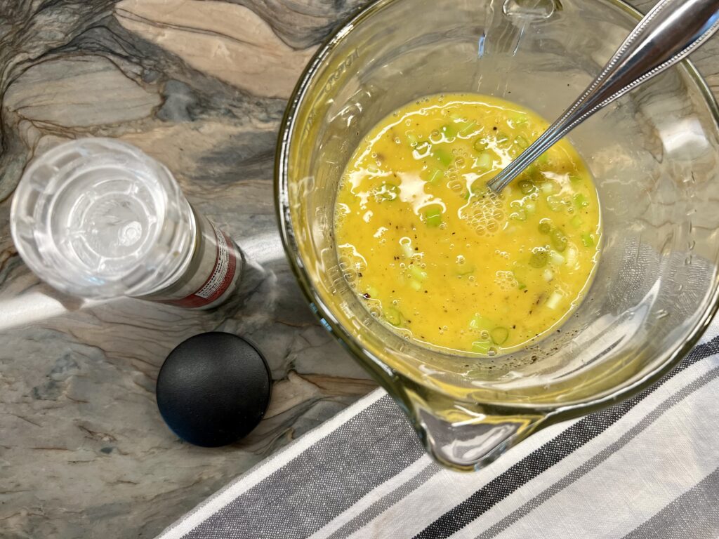 But if you’re making the bites with Canadian bacon, you can add the ingredients straight to your beaten eggs!