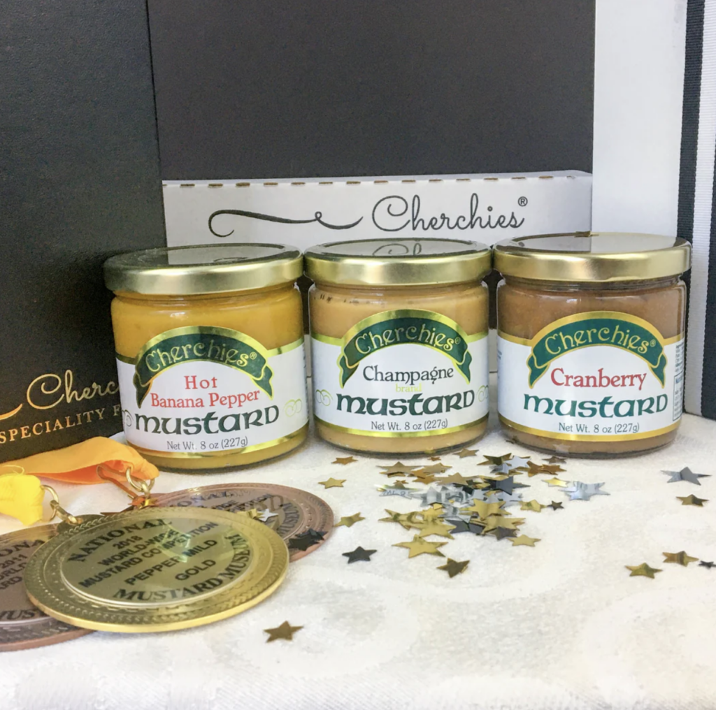 “I’ve always liked mustard, but when I tried Cherchies, it took my love of mustard to a new level. This set includes a champagne mustard, cranberry mustard, and a hot banana pepper mustard (it’s the BOMB!).”