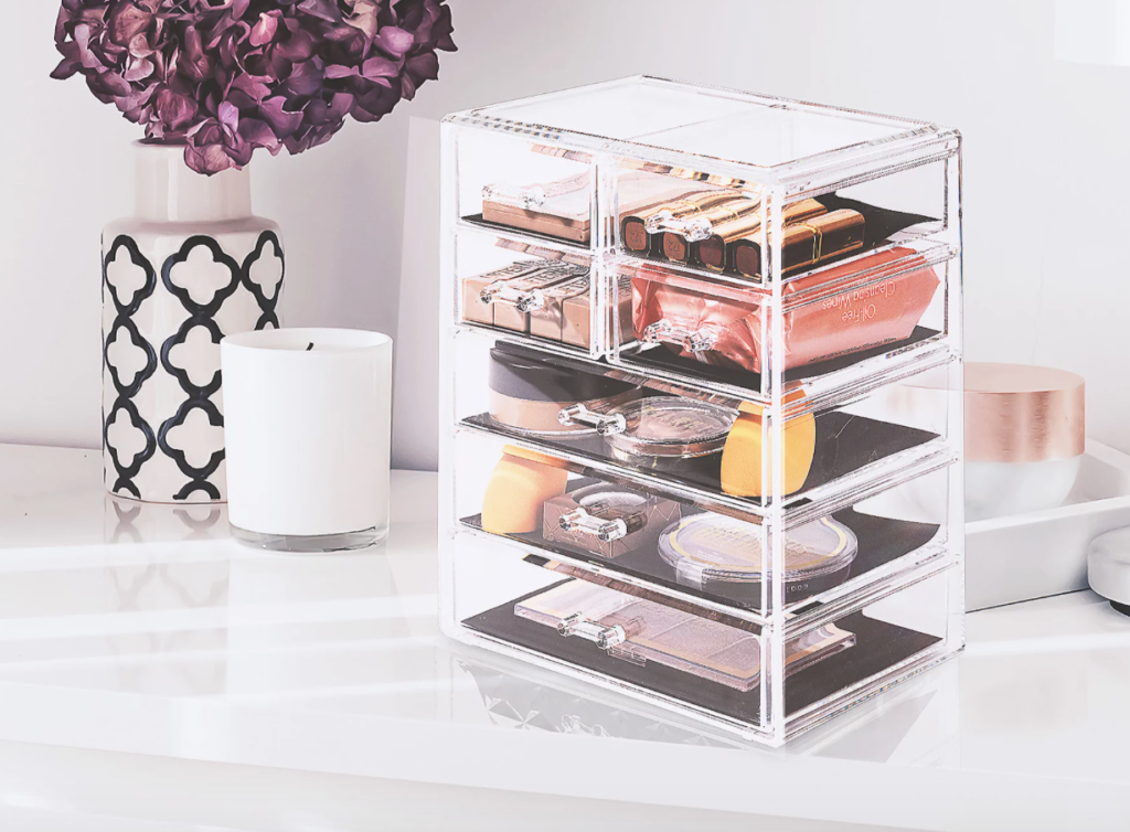 I’m also a huge fan of this Sorbus organizer. In addition to holding makeup, it can also hold all of your jewelry!