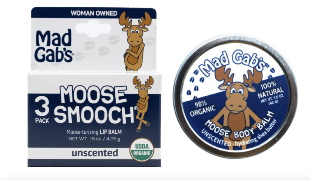 This Mad Gab’s Moose Smooch Set includes three shea butter balms in little tins that work perfectly as stocking stuffers. And those dry winter lips? No match for this stuff!