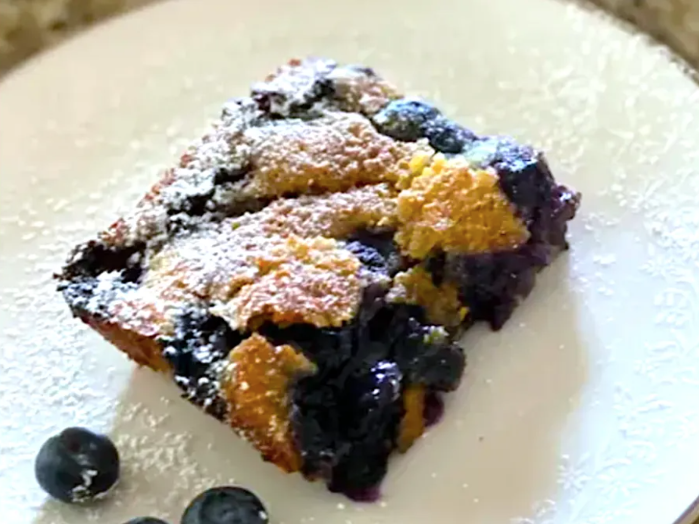 What I love about this blueberry recipe is that it requires cans of blueberry pie filling in addition to fresh blueberries—adding an extra sweet component to the mix.
