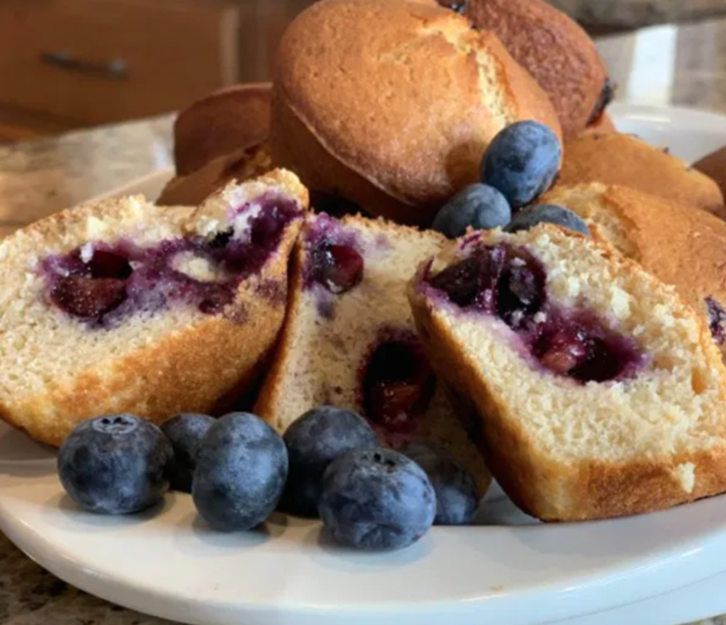 The muffin recipe is one that allows for substitutions also. So if you’re more of a fan of cranberries or raspberries, you can throw them in the mix, too!