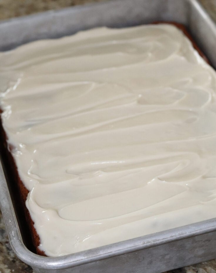 - Put the batter in the prepared 13x9x2 pan and bake for about 40 minutes or until a toothpick inserted in the center comes out clean. Cool completely before frosting with Low Fat Cream Cheese Frosting.