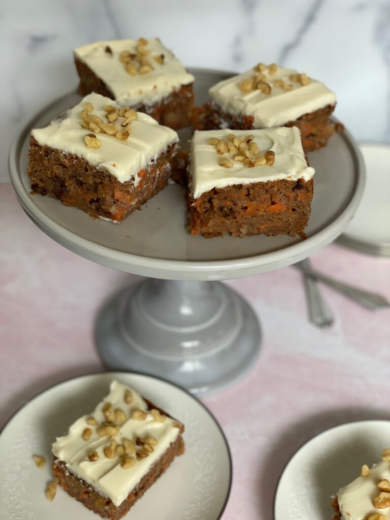 In comparison, a full-fat version of carrot cake and cream cheese frosting would be a whopping 700 calories and over 35 grams of fat. Yikes!