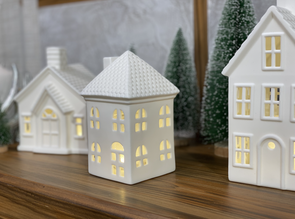 The petite houses add a whimsical touch to your decor, and the glow from the windows offers a little warmth to your room!