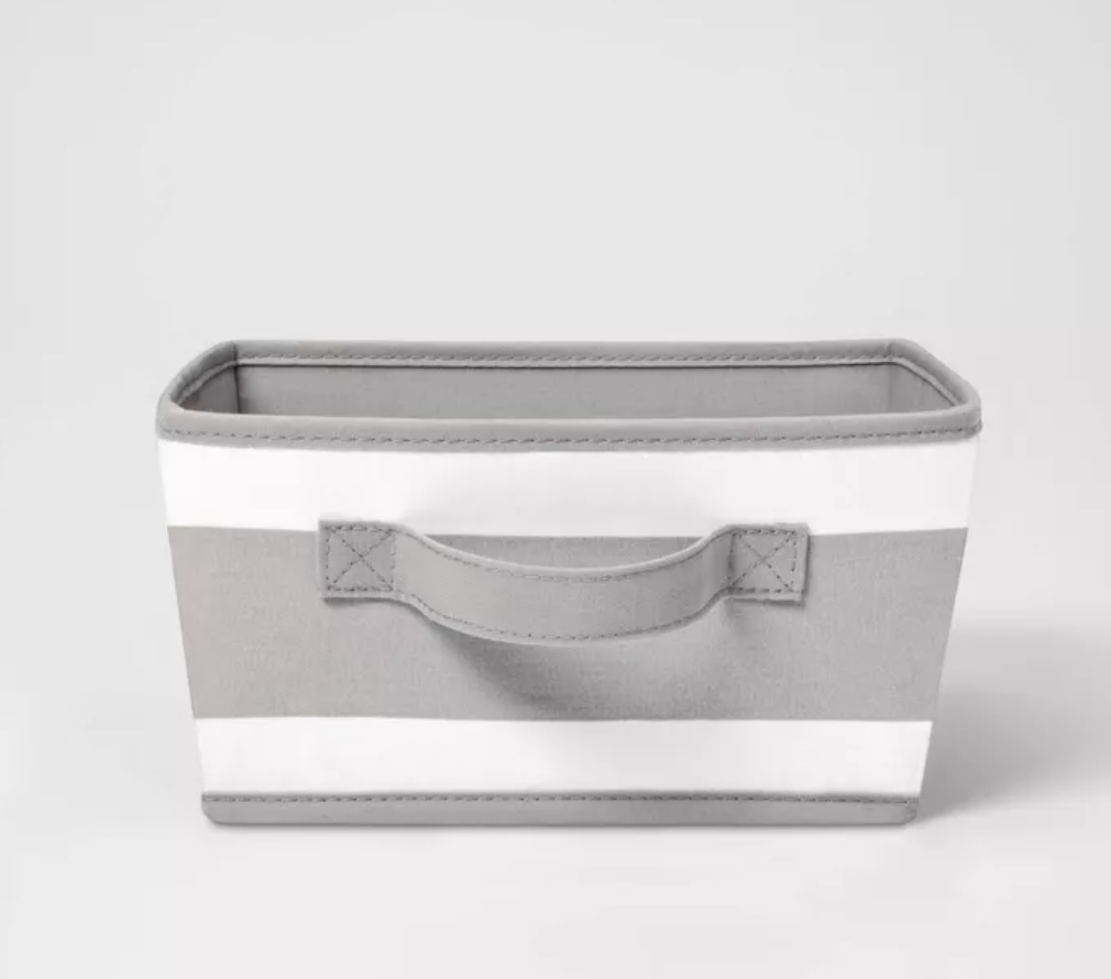 If you have shelves in your closet, make the most of your space by using bins and baskets. This canvas basket from Target is perfect for cold-weather gear, socks, hats, and more. But if you do opt for bins, I find it helpful to label them!