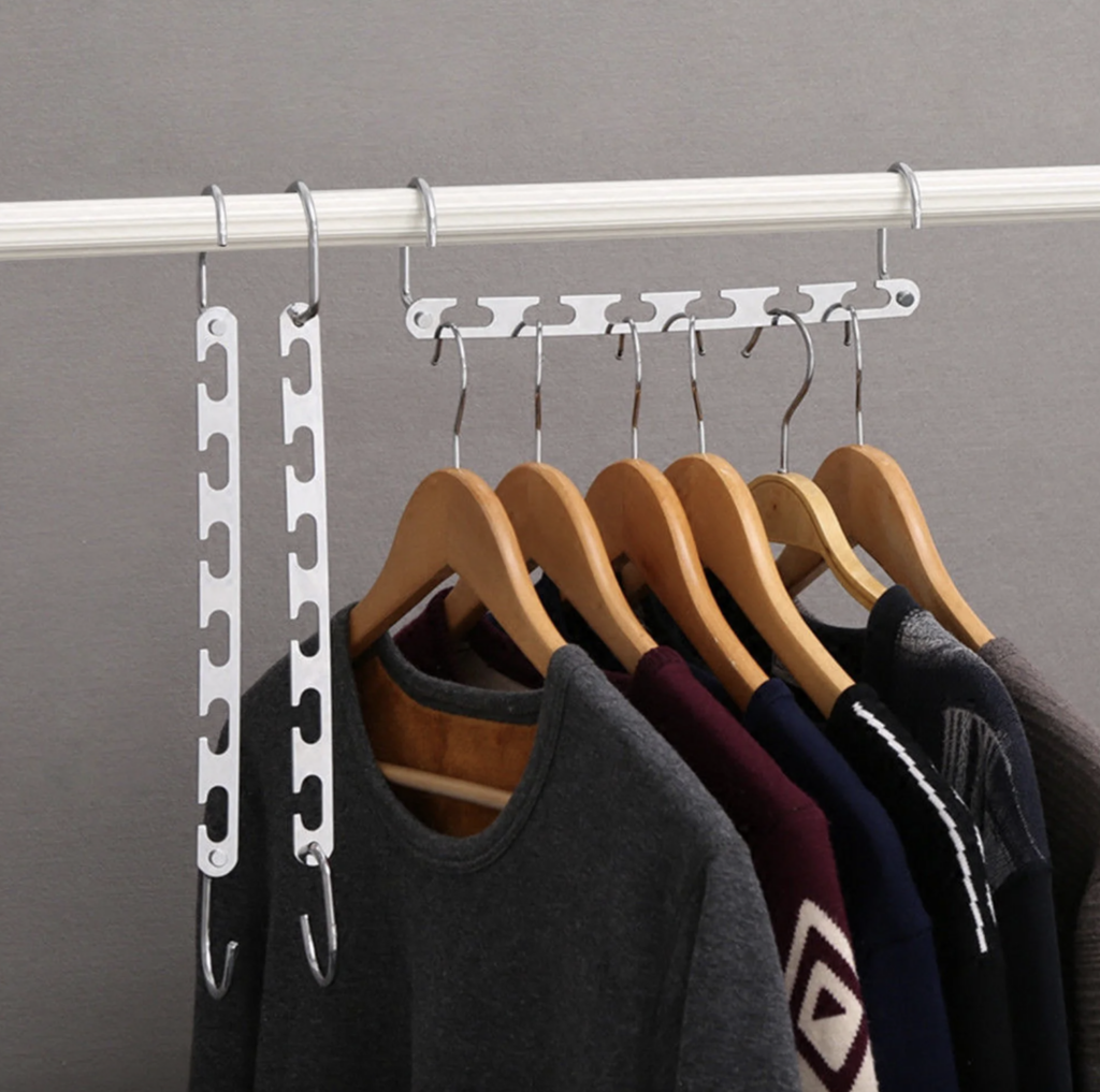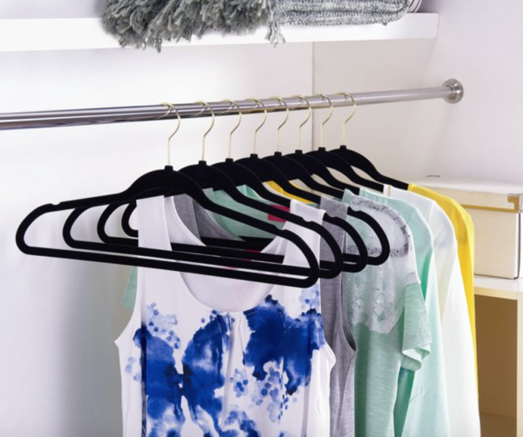 *Pro-tip: You can DIY your own by putting pop-tops over the metal hook of the hanger and using the other hole to hang another hanger.