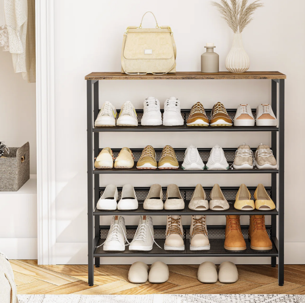 But if you’d rather have them sitting side-by-side, a shoe rack is also a good option.Try to find one that has a small footprint (like the one above) so that it doesn’t take up much space, especially in a hallway or entryway.