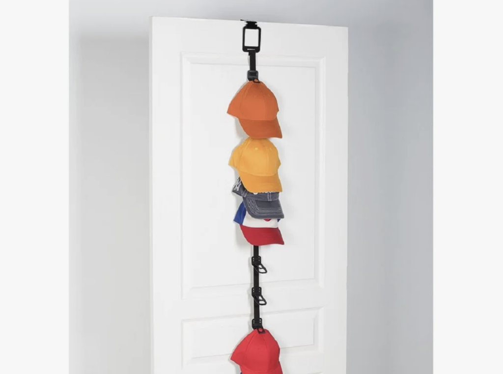 First is this hat organizer. You can mount it on the wall or hang it from a bar in your closet. And in addition to hanging your hats, you can also hang belts and ties!