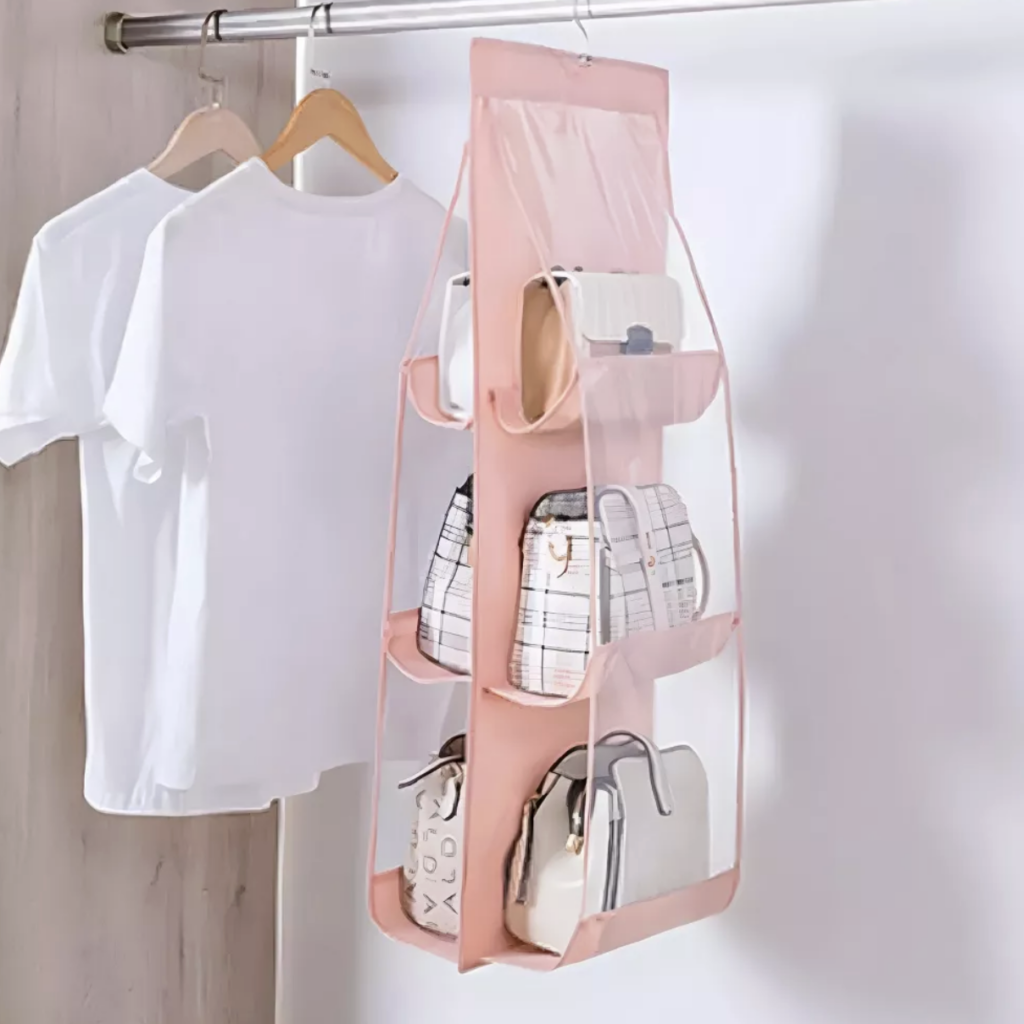 How neat is this bag holder? It hangs in your closet with your clothes and keeps your purses from getting all smashed.