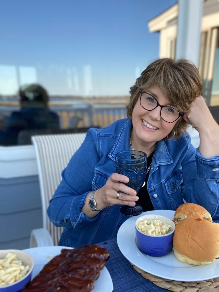 But don’t get me wrong. While I like the basic, classic look that isn’t too busy, I still LOVE accessorizing. See how good denim looks with my PowerBeads bracelets?