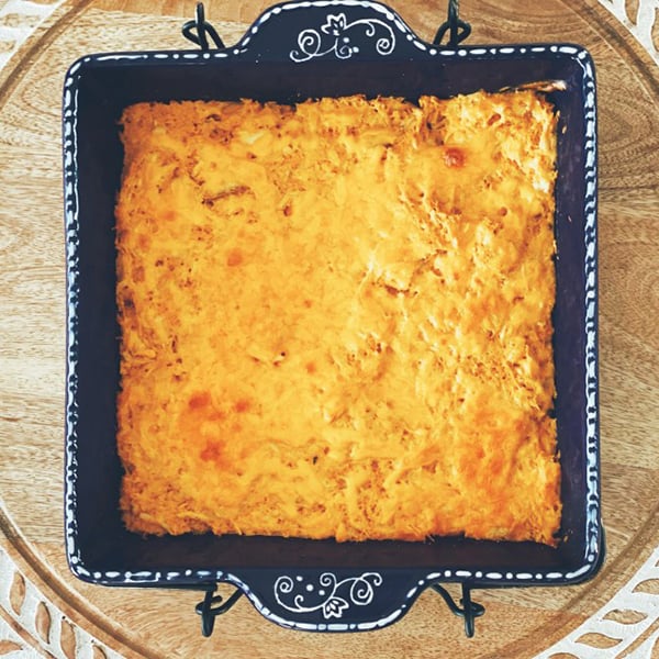 So, I was thrilled when a friend shared her recipe for this low-carb Buffalo Chicken Bake that was lighter in fat and calories than the traditional dip.