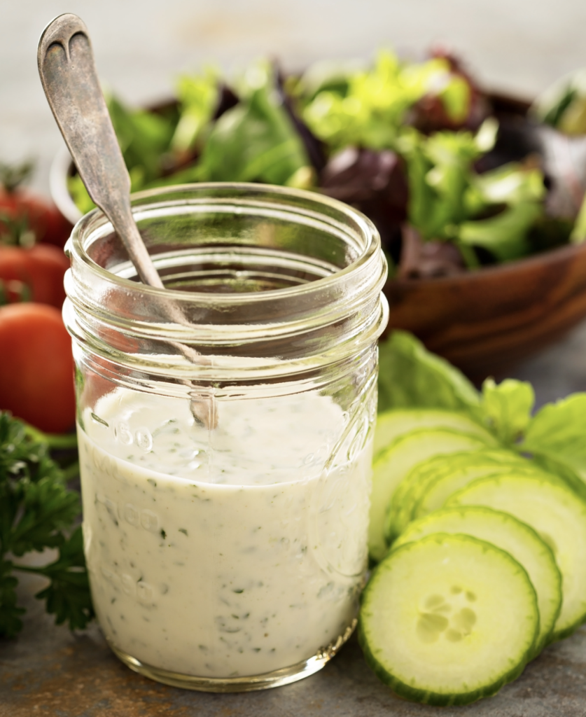I also like to repurpose jars and food packaging as storage. An example? I have a pickle jar that’s now holding some homemade dressing in my fridge!