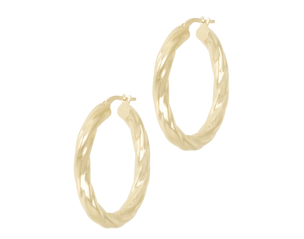 Don’t forget earrings! These Italian hoops are timeless and perfect for any occasion. They come plated in yellow gold or rose gold.