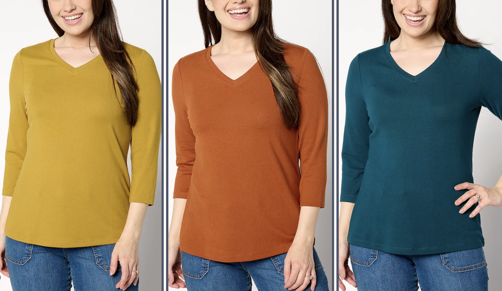 This trio of shirts practically screams fall. I love the colors and appreciate the flattering silhouette. Not a fan of these colors? There are more to choose from!