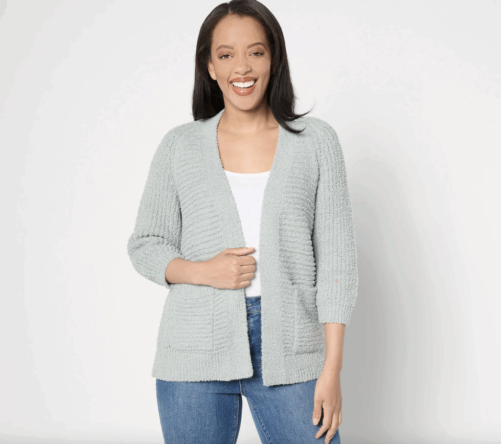 There’s another Barefoot Dreams cardigan that has a subtle stripe design. In my opinion, it’s a must for layering with leggings!