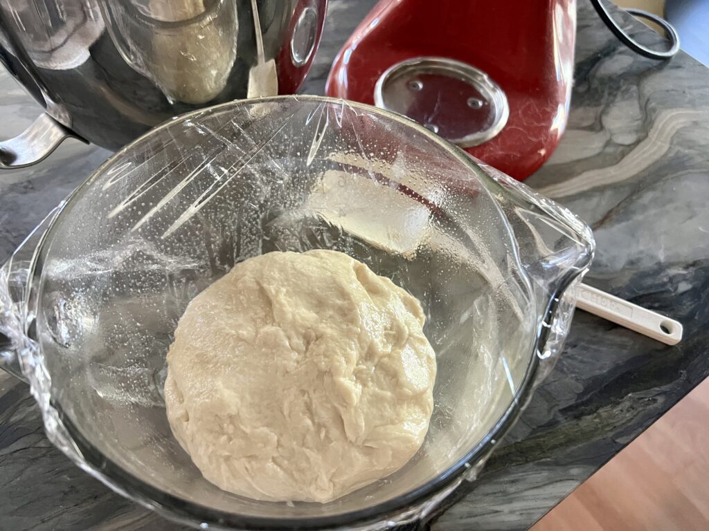 Cover the bowl tightly and allow the dough to double in size. This took around an hour and a half for me.