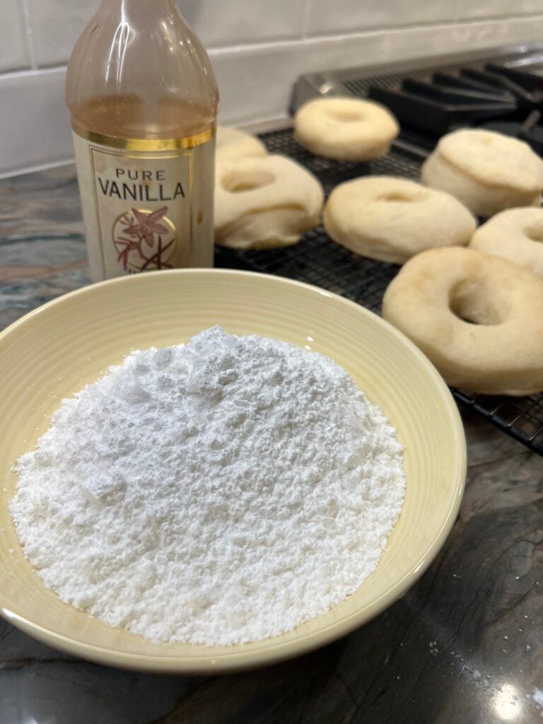 When you take them out, you’ll have fluffy donuts that are almost ready to eat! Just let them cool on a cooling rack before taking a taste.