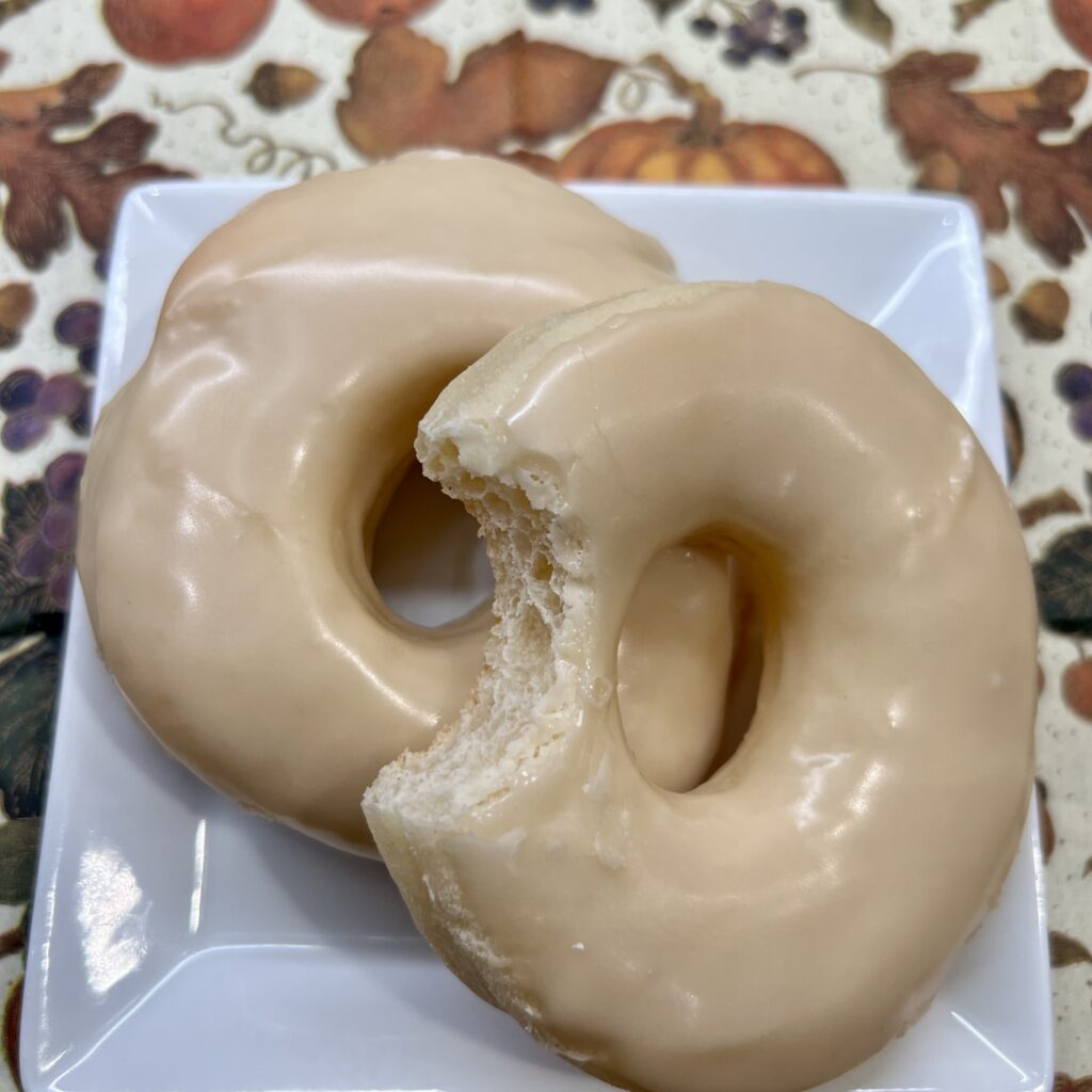 - When the glaze is well-mixed, dip your donuts top-down into the glaze, ensuring you dip them approximately halfway into the glaze.