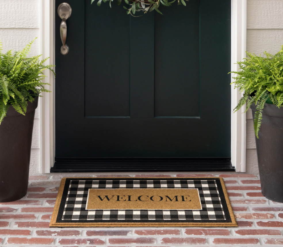 This checkered welcome mat will add an adorable touch to your front door space. So cute!