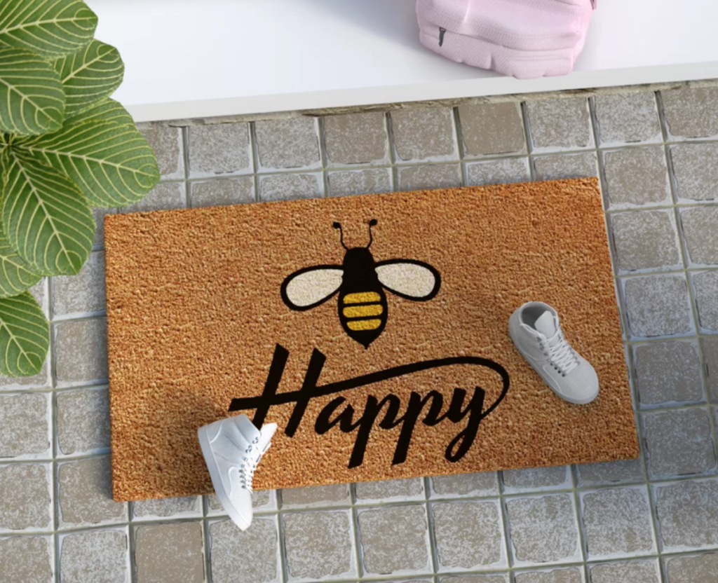 Here’s another message that made me smile. This “Bee Happy” mat is sure to make your guests smile as well!
