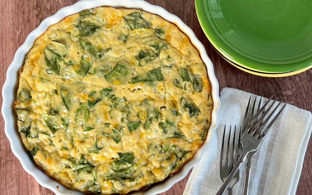 This quick and easy crustless quiche is perfect for any busy morning or night. Just throw in some fruit on the side and you'll have a meal ready to go.