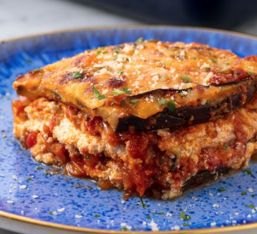 Although it’s a bit lighter thanks to the use of sliced eggplant instead of lasagne (those long, flat noodles), it doesn’t lack in the flavor department.