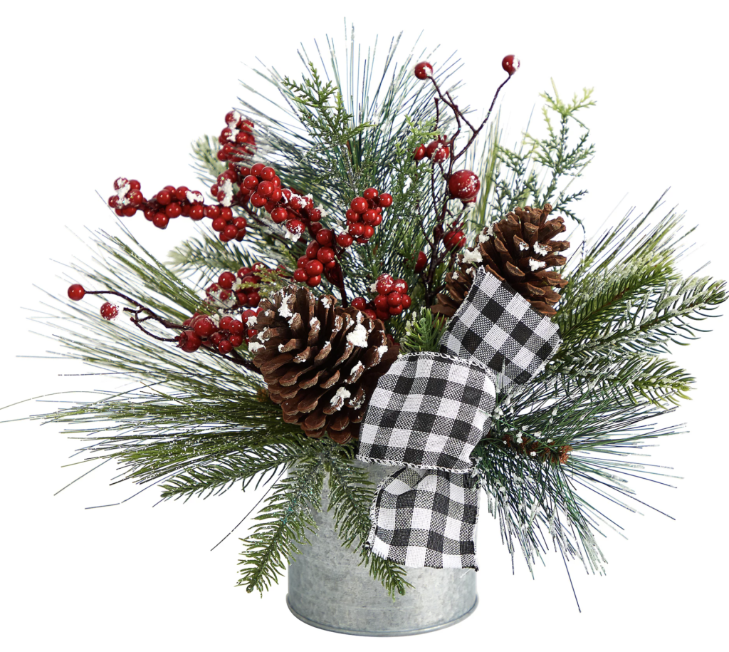 I love the versatility of this Frosted Pinecones & Berriesin Vase.