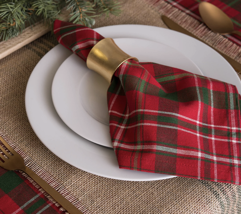This Plaid Napkin Set features traditional Christmas colors that look great with both gold or silver utensils. They’re 100% cotton and the set comes with six napkins.