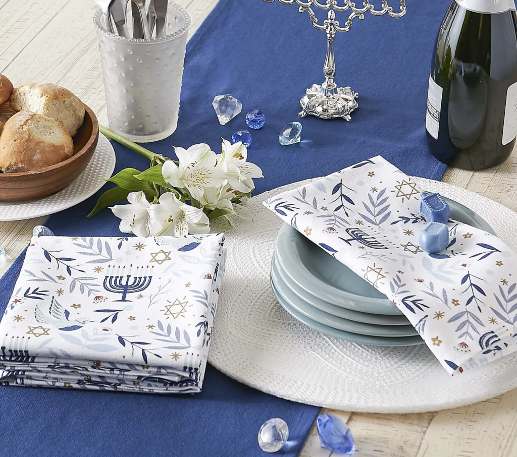 If you have a Hanukkah-themed table, these blue, white and gold napkins are bound to go well with the rest of your decor!