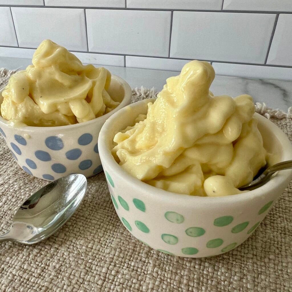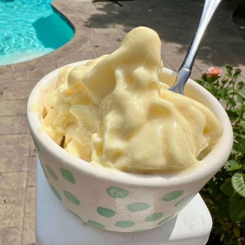 Dole Ship devotees who want to make this recipe even more authentic might want to place the finished Dole Whip into a frosting piping bag with a large star tip and swirl the creamy ice cream treat into a bowl. That’s a little too much effort, in my opinion. I want to enjoy the tropical flavor of this yummy at-home version without any fuss!