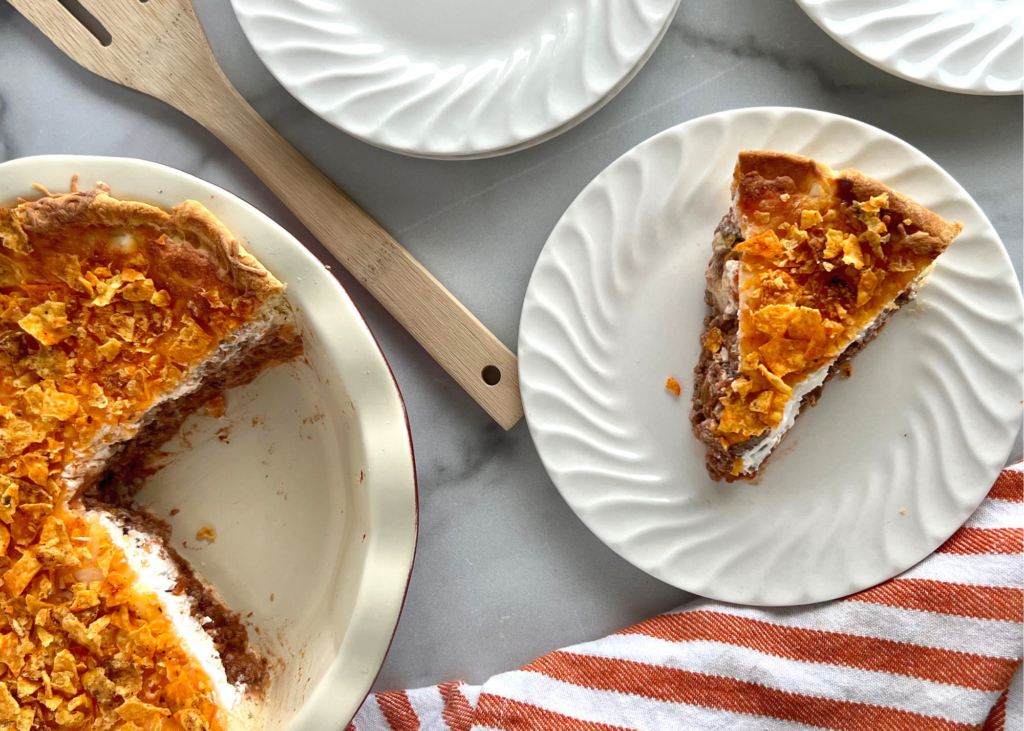 I don’t call it my Hearty and Crunchy Taco Pie for nothing. Just one slice can fill you up!