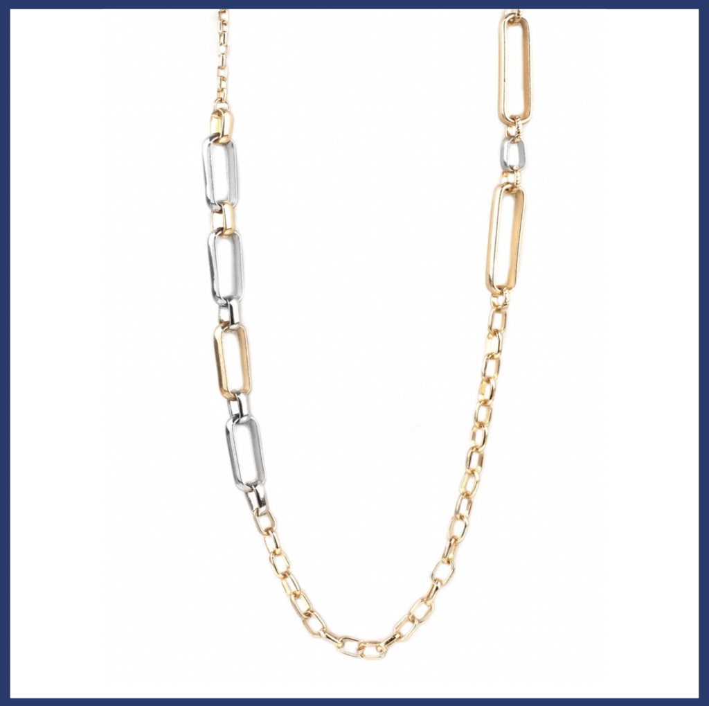 I know it will look good with either accents of gold or silver. It feels important. The necklace also has a nice weight and it’s incredibly well-made. At a great price point for the length, look and style!