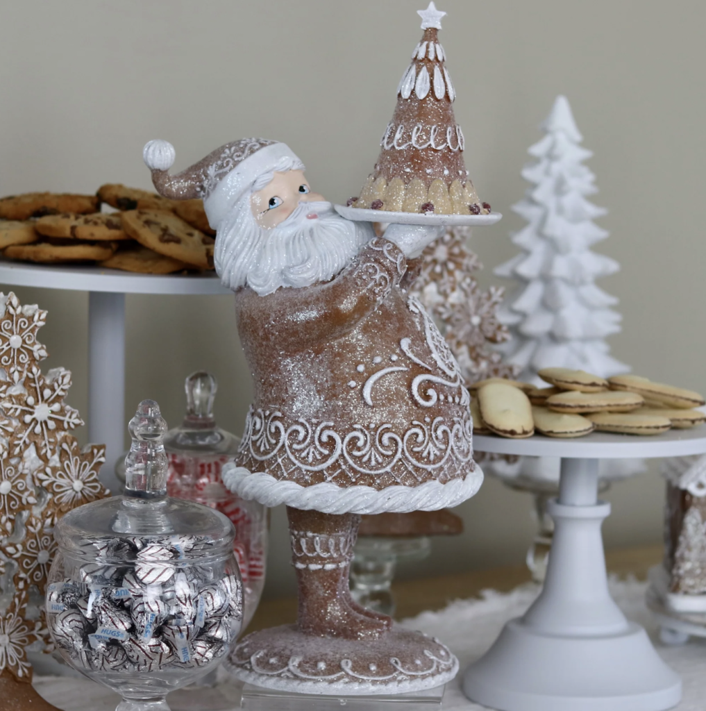 This Jolly Gingerbread Santa is holding a big plate of cookies and he’s happy to share!
