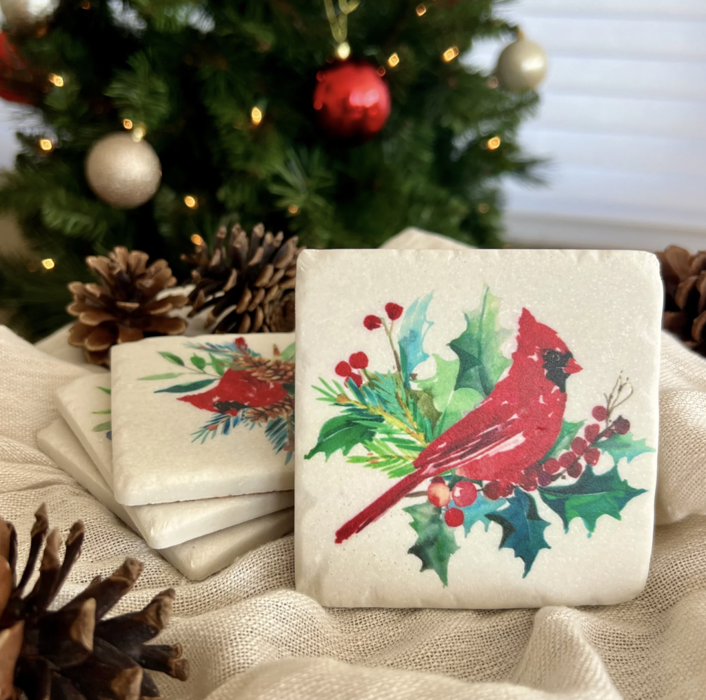 For just a touch of decor, check out these cardinal coasters with a tumbled finish.