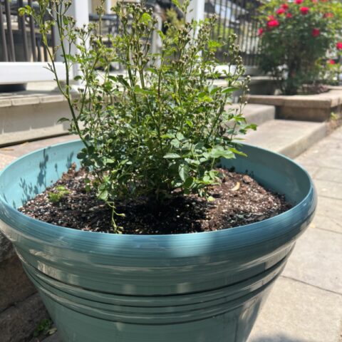 It’s in the ground with the other roses, and I planted one in a large container to use around the patio.