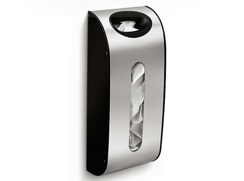 I collect plastic store bags like it’s my job… Unfortunately, they can make any space look messy in an instant. I found this Simplehuman Bag Holder which is crafted to keep all your bags in one compact area. There’s also an opening in the front that allows for easy access to those bags when you need them.