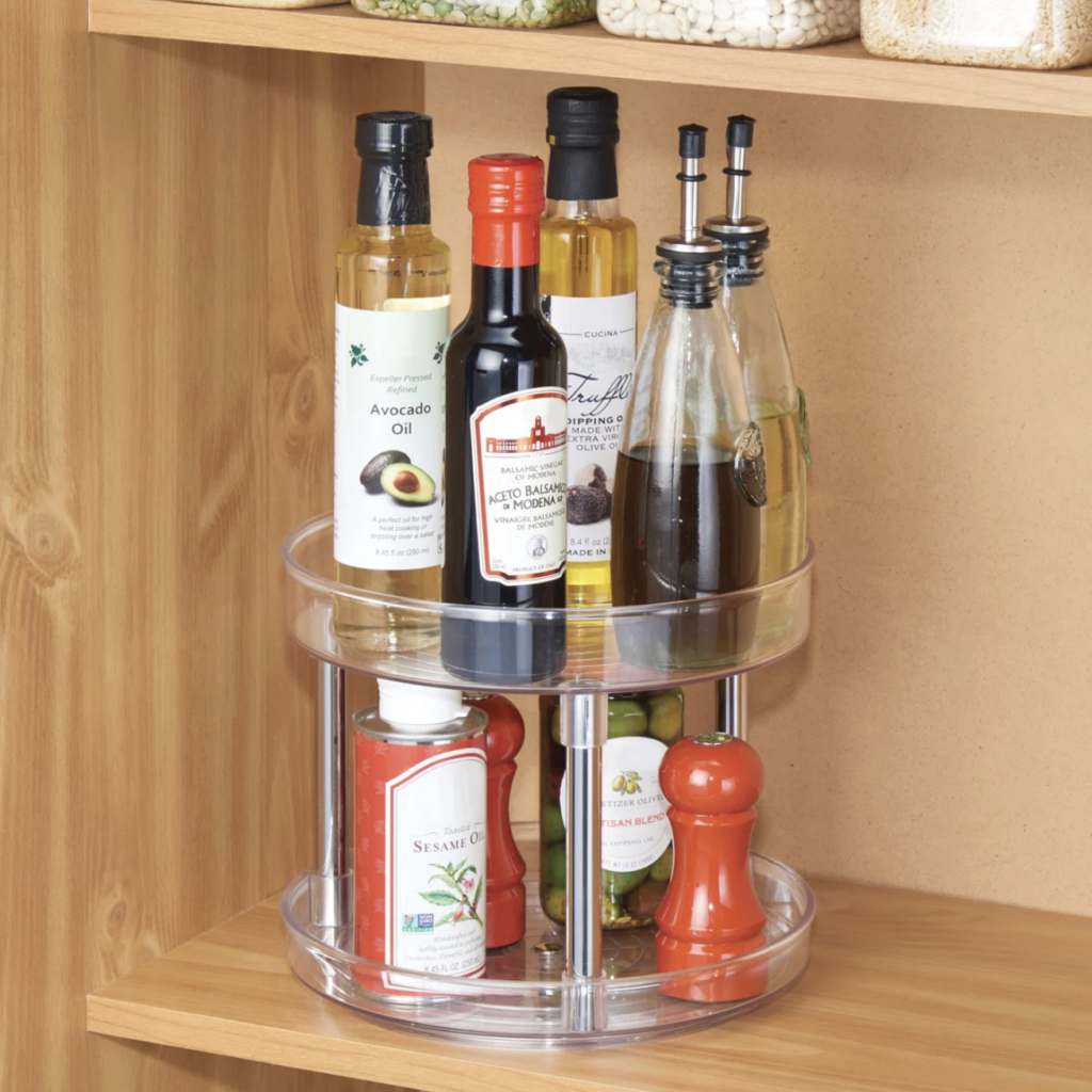 If it isn’t obvious already from my Refrigerator Organization Blog, I love lazy Susans. They make everything easy to reach and they’re extremely versatile. This Lazy Susan is two-tiered, which allows you to take full advantage of your pantry organization efforts.