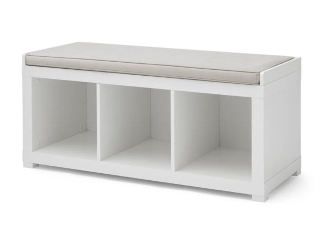 Using a bench like this white bench above offers a place for all of your pet’s gear, and also a place for you to sit while getting your pet ready to go outside.