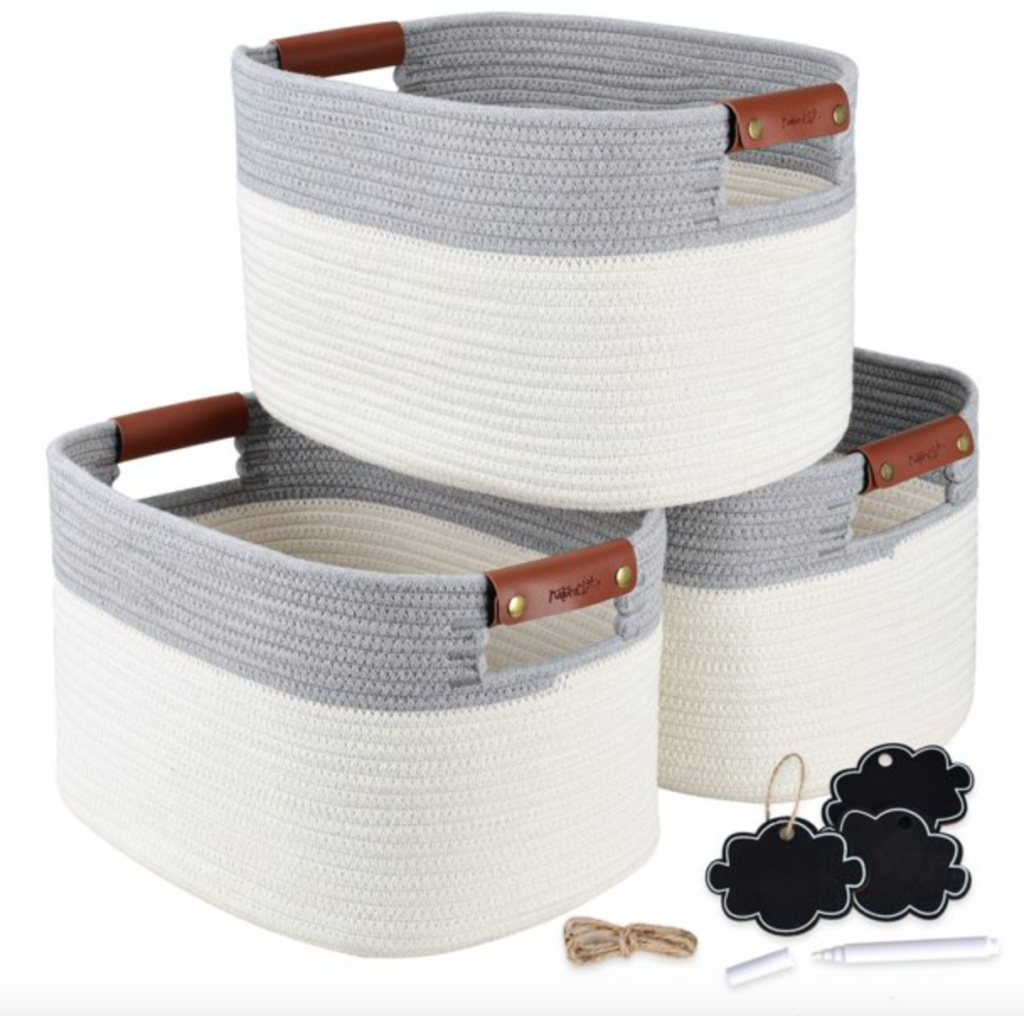 I love the idea of using baskets for sorting household goods (I even use them for shoes and throw blankets). And this set of rope baskets from Walmart is sure to do the trick!