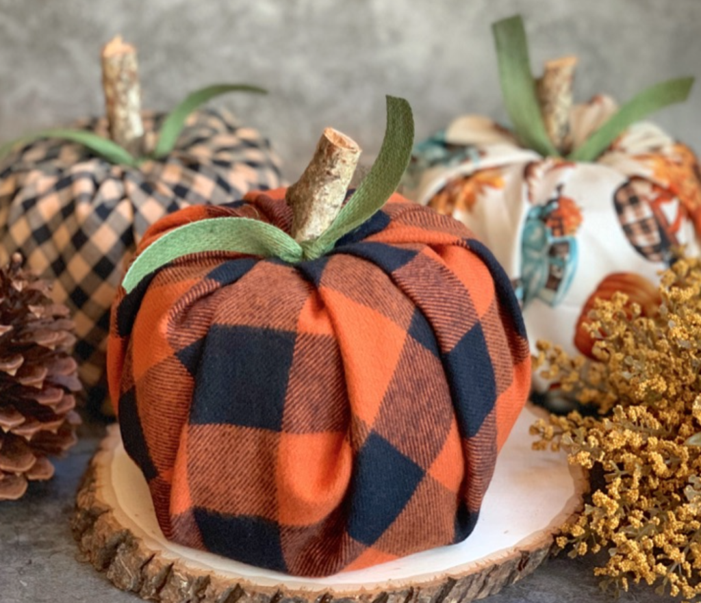 Depending on the type of fabric you use, these pumpkins can be used for either Halloween or Thanksgiving!
