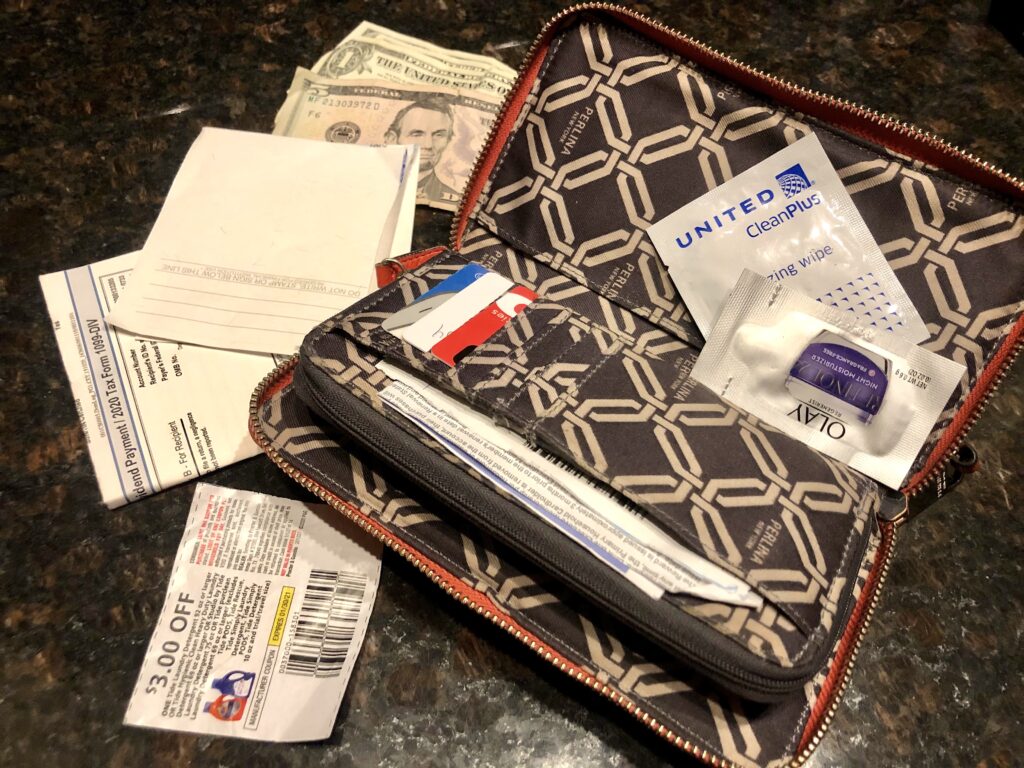 Follow by putting everything back into your wallet in an organized fashion. I like facing all of my bills in the same direction and grouping them by value. This way, I always know how much cash I’m carrying, and when I need it, I can easily reach for it.