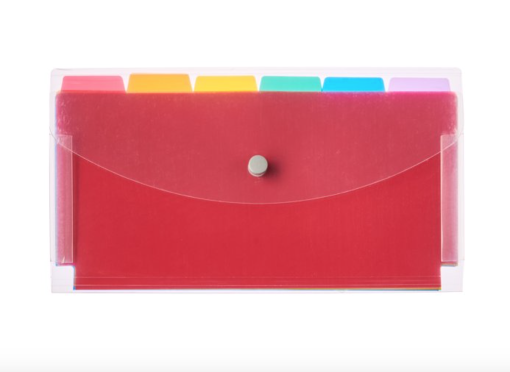 This accordion organizer is a great way to keep all of your coupons and receipts in one place. It includes multiple pockets which allow you to designate each one to a different store.