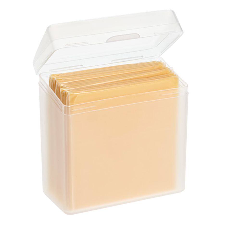 Whether you keep individually wrapped or bulk cheese slices in the house, this Sliced Cheese Stay Fresh Container will come in handy. It’s the perfect size for conveniently packaged cheese and it keeps the cheese air-tight for longer shelf life.
