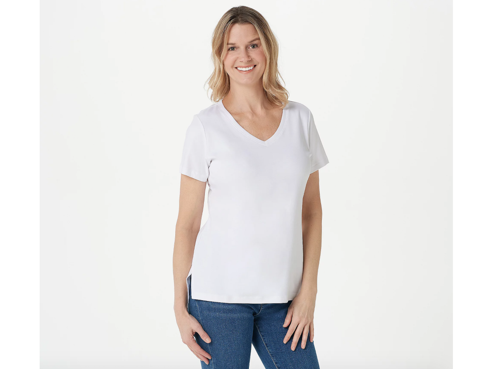 If you’re looking for a basic tee, I love this 100% cotton style. It comes in multiple colors, and it has a relaxed yet tailored fit.