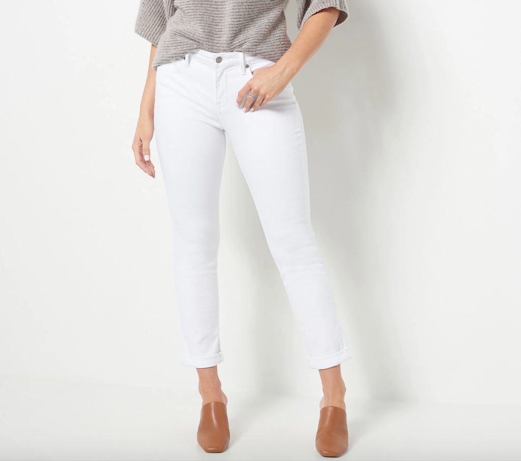 And if you’re in need of a white pair, I recommend taking a look at these slim ankle jeans. Now, white can be intimidating… so make sure you find something that makes you look AND feel good.