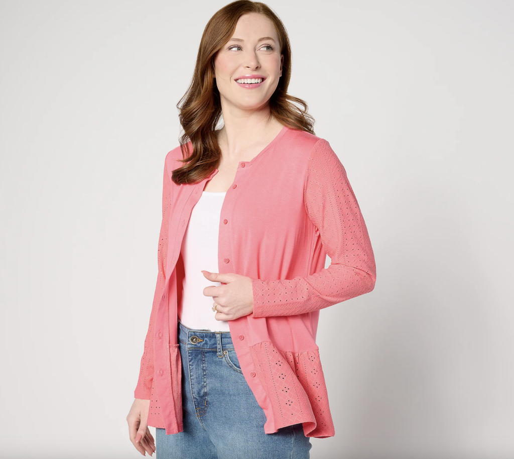 Some cardigans can get a bit bulky, but this one from QVC is light and airy. I love the textured look and adore the colors—so vibrant!