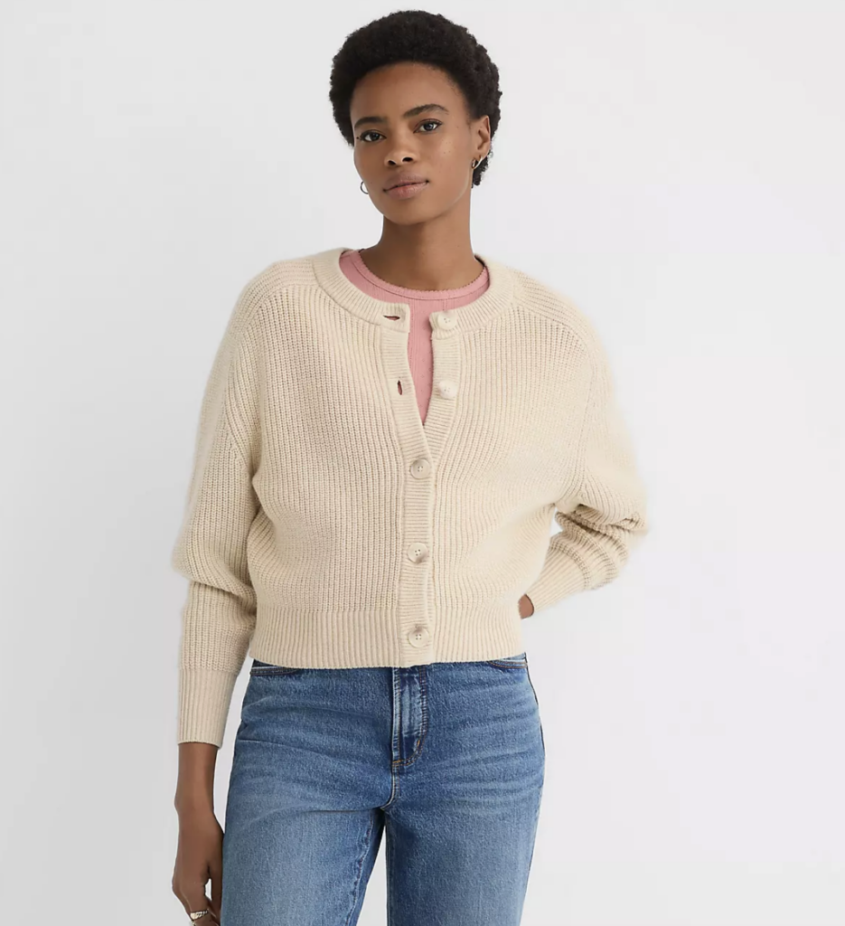 I love a good cardigan when spring rolls around. This one from Loft has a relaxed look, and it’s made with a comfortable (and machine-washable) cotton-blend material.