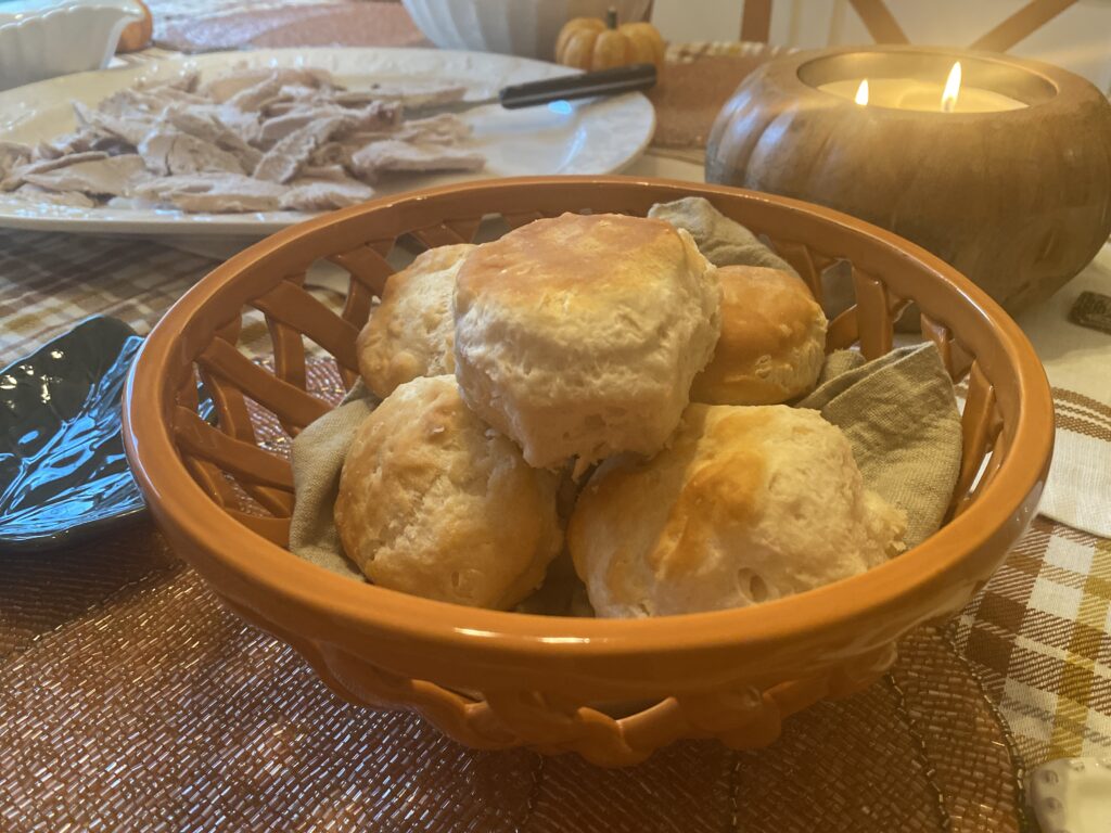 Speaking of dinner rolls, I’m placing mine in a weave breadbasket. It comes in two colors, but this burnt orange option was calling my name!