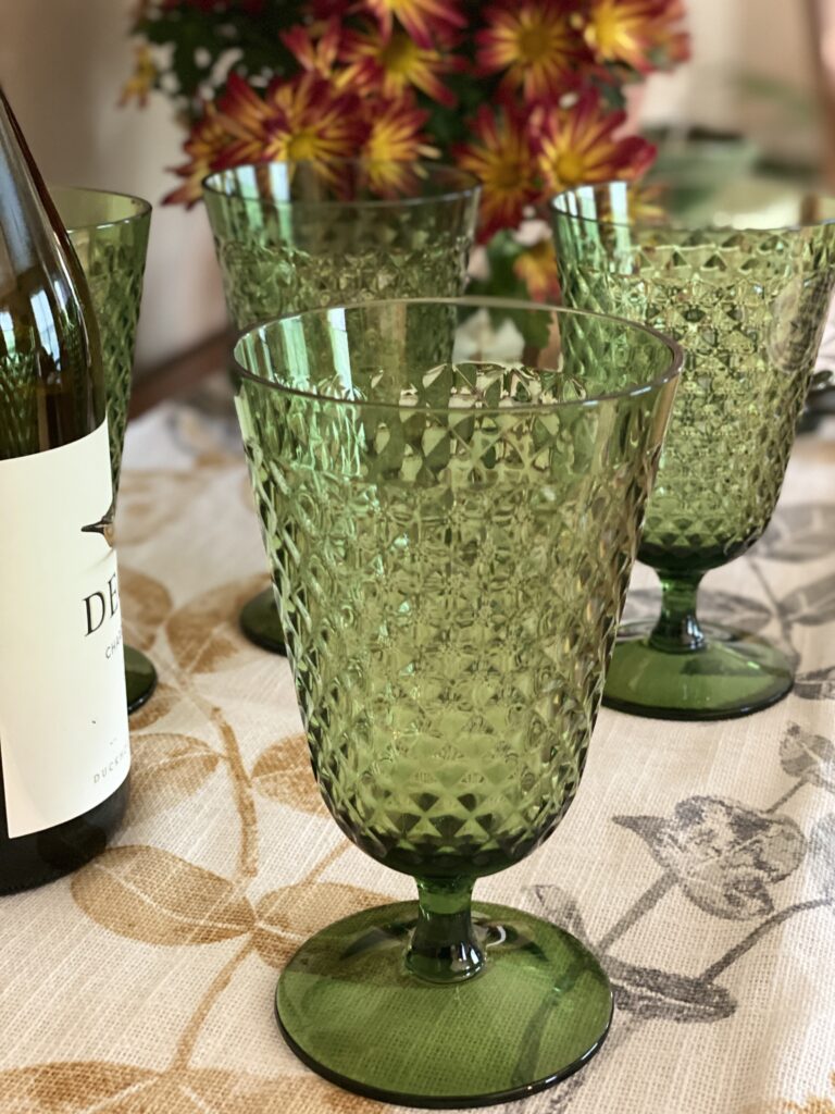 And whether I’m serving cider or ice water, I always make sure to have plenty of glassware. These green goblets are actually acrylic, but they look so nice!